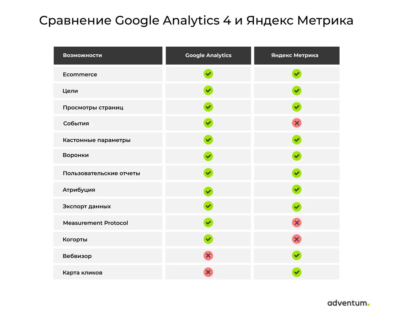 — В Яндекс.Метрике отсутствует класс событий, в то время как в GA4 все взаимодействия пользователей отслеживаются событиями.