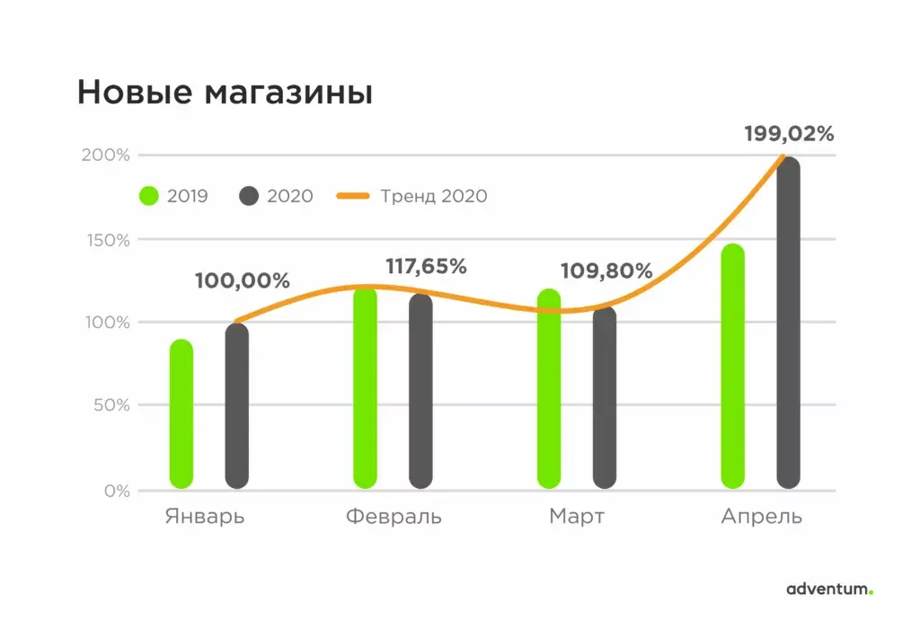 - Отрасли e-commerce и медиа выросли в DAU на 33-52% за короткий период в марте, тогда как обычно рост составляет менее 5% в месяц.